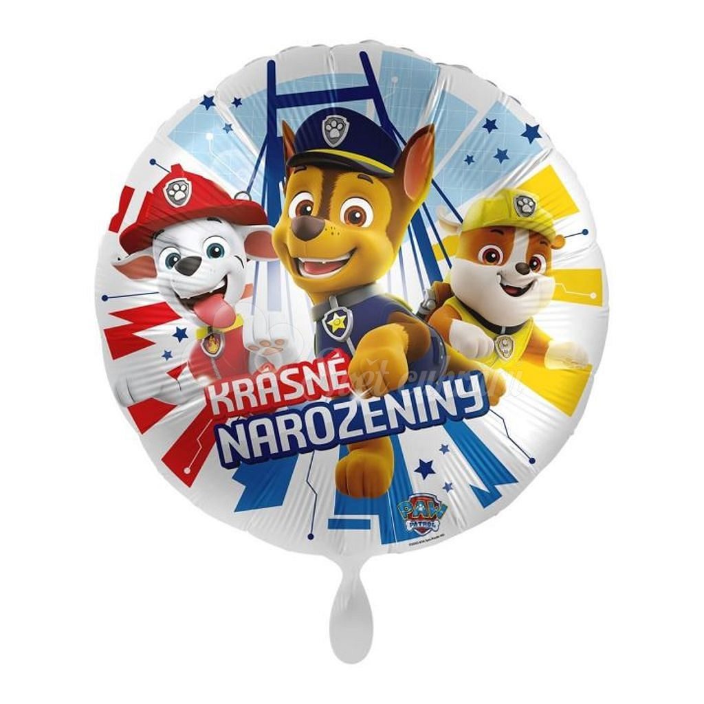 Stylový foliový balónek na dětskou párty s motivem z oblíbeného seriálu Tlapková patrola s nápisem "Krásné narozeniny". Udělejte radost vašim dětem a vytvořte nezapomenutelnou atmosféru na jejich speciální den!