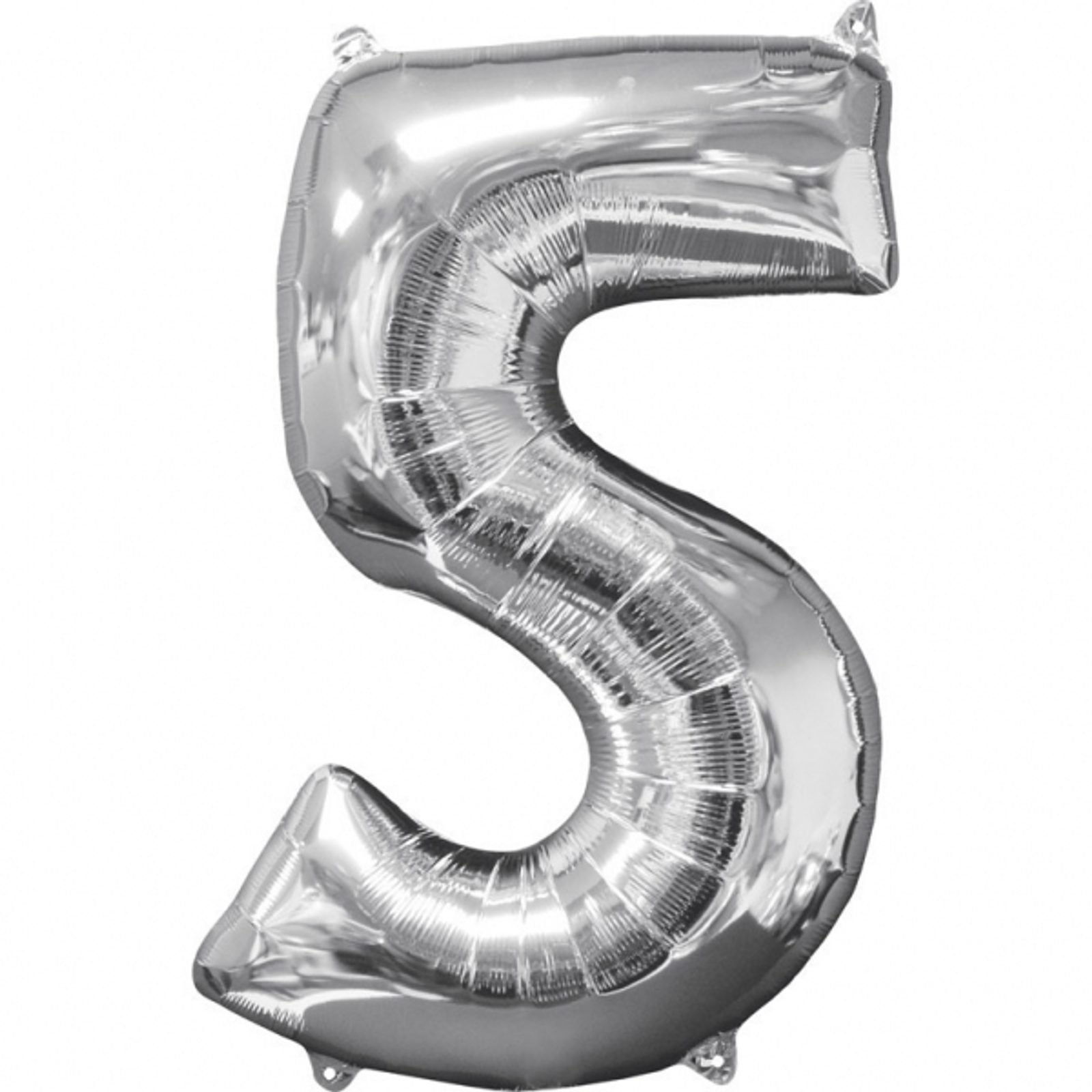 balónek fóliový narozeniny číslo 5 stříbrný 66cm