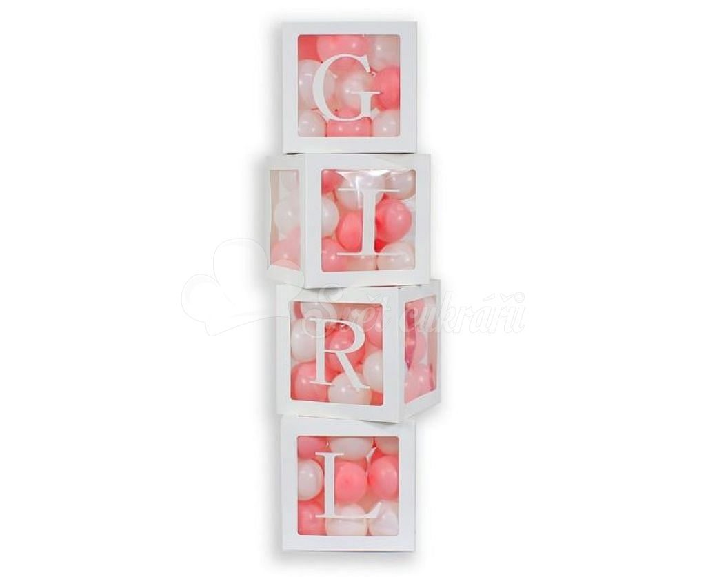 Sada transparentních boxů pro výzdobu, které lze uspořádat do nápisu „GIRL“. Perfektní doplněk pro dětský pokoj nebo babyshower.