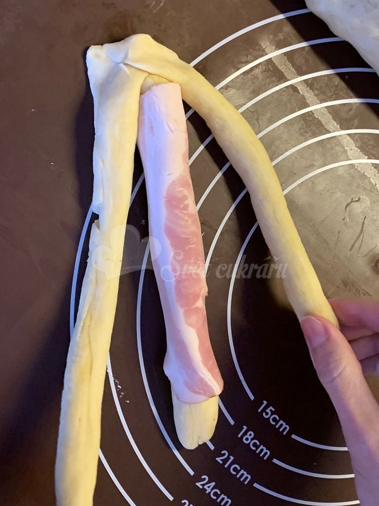 Promícháme mouku a sůl, založíme kvásek z teplé ocukrované vody a vlijeme do důlku v mouce, do druhého důlku vlijeme rozehřátý tuk. Necháme dvacet minut v teple přikryté.