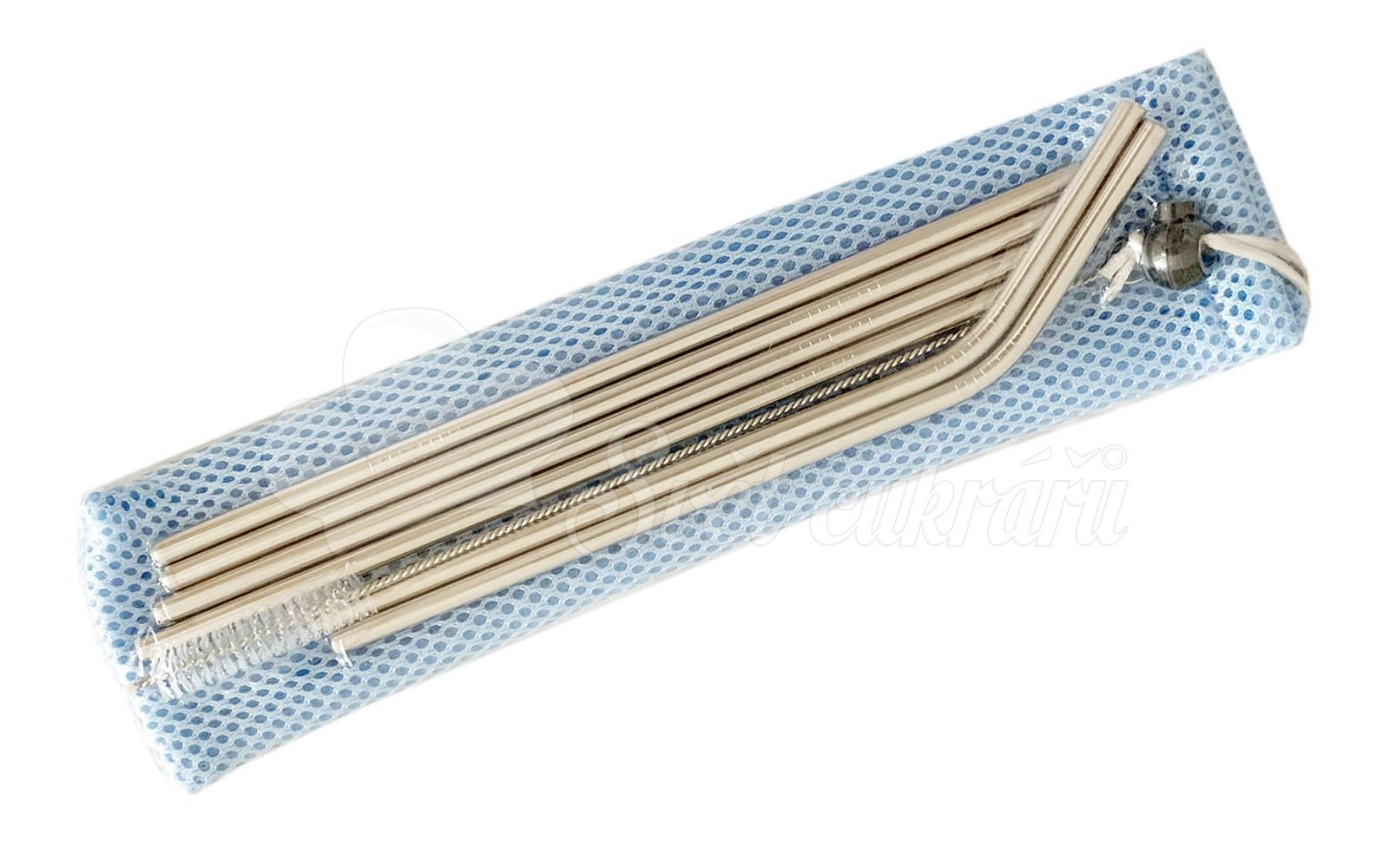 Nerezová brčka na nápoje - 6 ks s čistícím kartáčkem + praktický modrý pytlík.