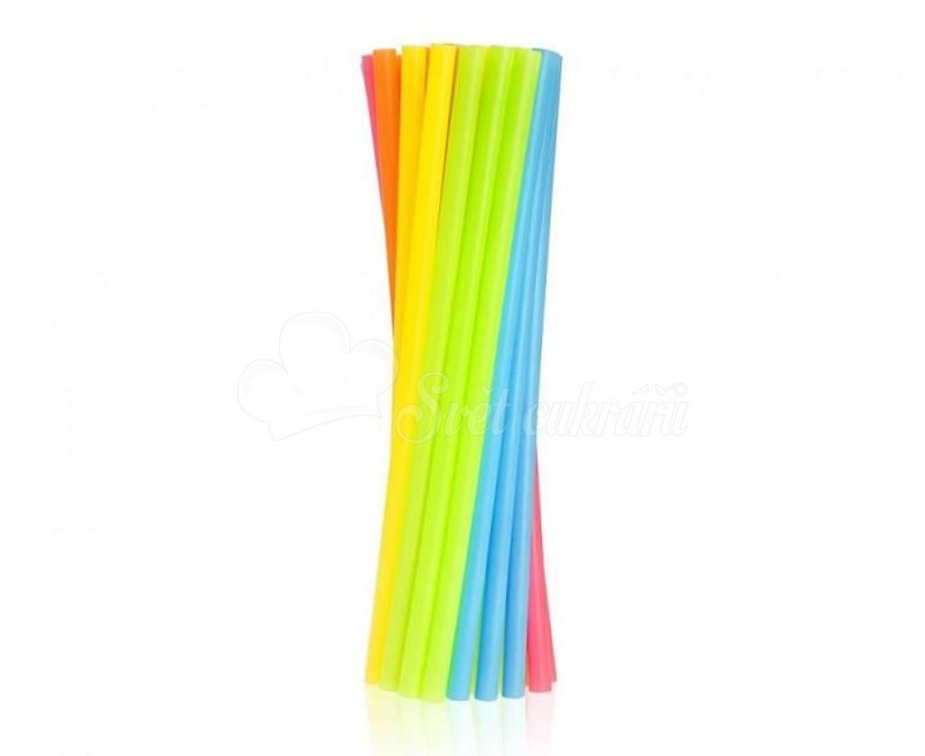 Praktická znovu použitelná plastová brčka v mixu barev, ideální pro párty drinky.