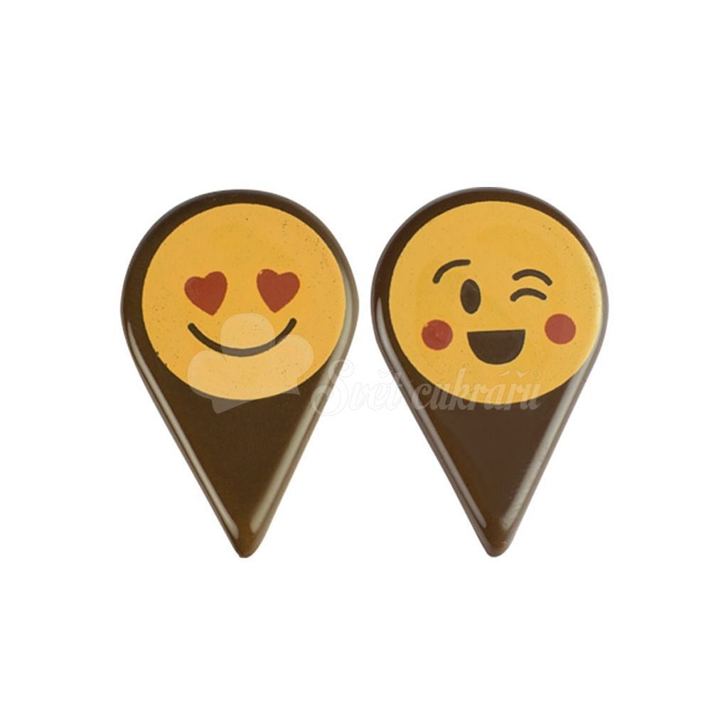 Sada čokoládových dekorací ve tvaru veselých smajlíků s barevným potiskem. Rozměr 36 × 32 mm, balení 15 kusů. Upozornění: velmi křehké zboží – zasíláme pouze na vlastní riziko zákazníka.