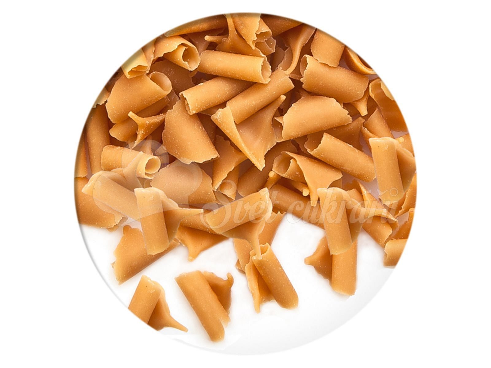 Čokoládová dekorace belgického výrobce - kudrna s karamelovou příchutí, baleno á 50 g.