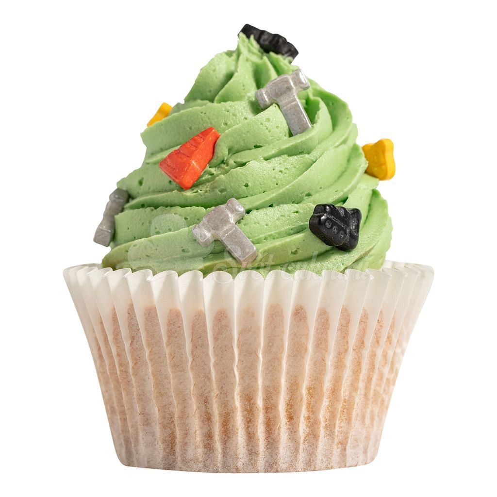 Směs obsahuje větší jedlé dekorace ve tvaru stavebních značek a nářadí, každá o velikosti přibližně 12 mm. Díky výrazným tvarům vytvoříte efektní vzhled bez složité modelace.