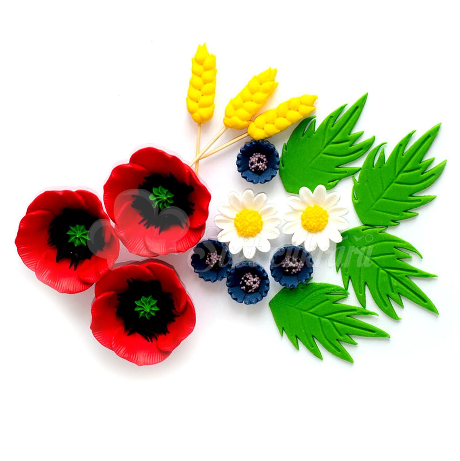 Elegantní cukrové dekorace ve tvaru lučních květů pro zdobení dortu. Větší velikost květů zvýrazní finální vzhled vašeho dezertu.