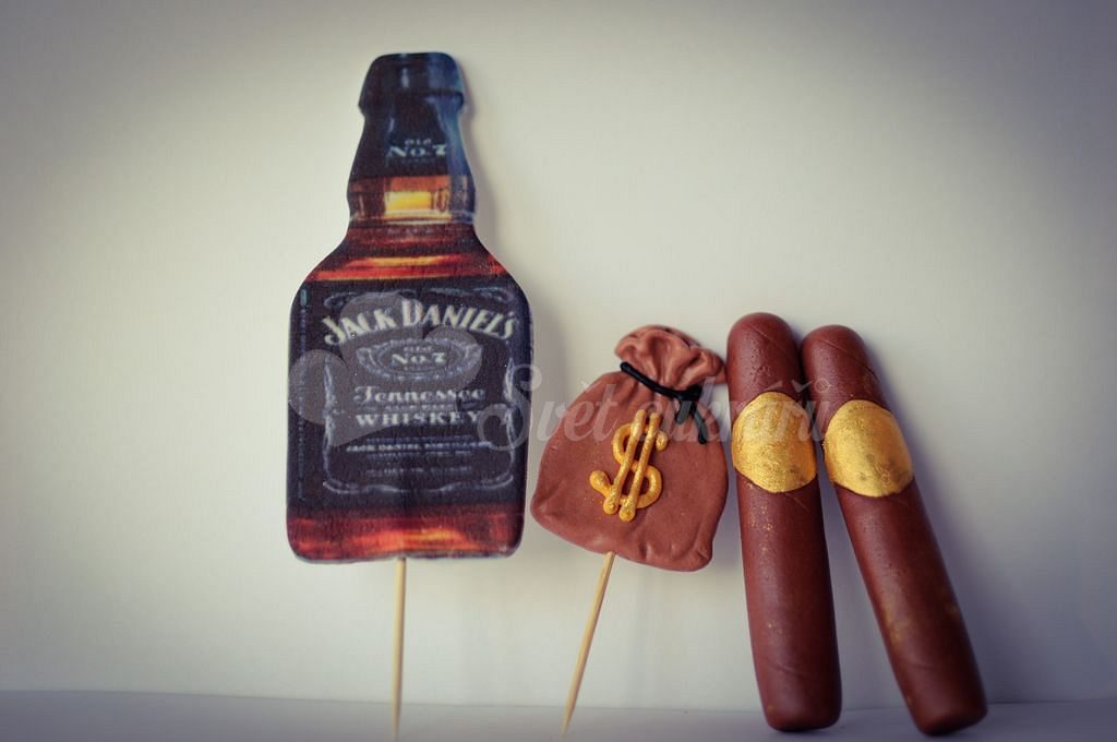 Cukrová dekorace na dort s pánským motivem whisky