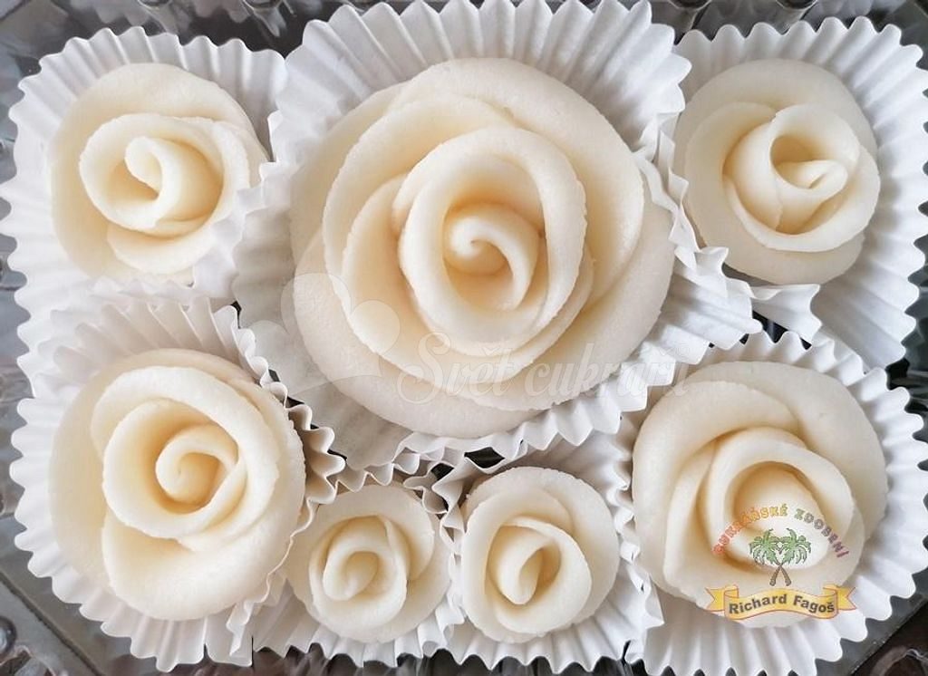 Ručně vyrobené růže bílé barvy z kokosové modelovací hmoty s příchutí aroma sladkých mandlí. Krabička se skládá ze sedmi kusů růží: