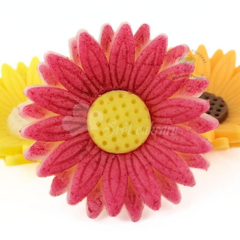 Modelované květy gerbera růžová stříkaná se žlutým středem