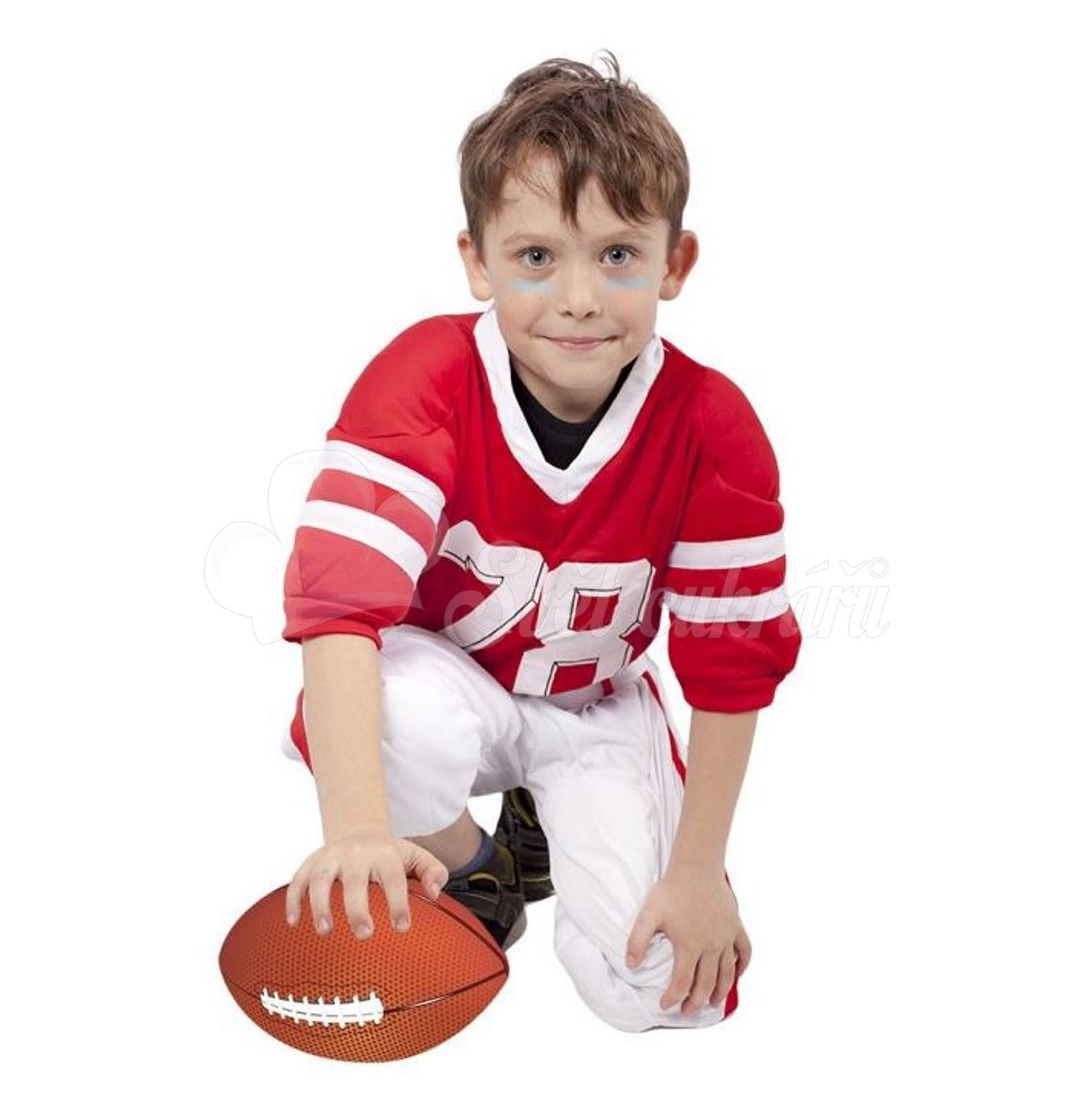 Kostým fotbalového hráče ve velikosti L pro děti 8-10 let s vystuženým trikem a kalhotami.