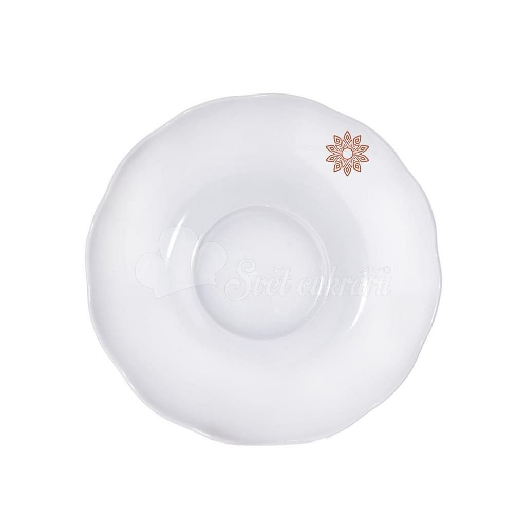 Elegantní podšálek s ozdobným okrajem, který dodá vašemu stolování nádech sofistikovanosti. Tento podšálek je vyroben z kvalitního porcelánu a jeho atraktivní design s jemnou vlnkou na okraji dělá z každé šálky nezapomenutelný zážitek.