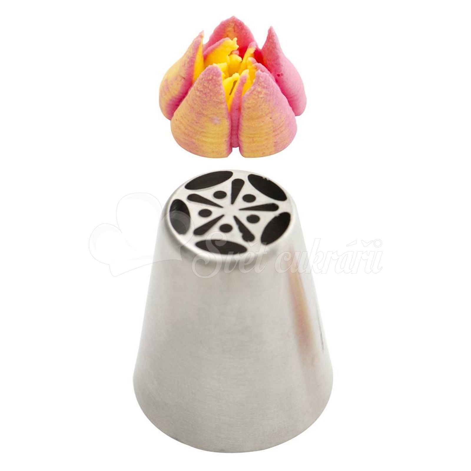 Kovová cukrářská zdobící špička ruská 17 tulipán vám zaručí přesnou a jedinečnou výzdobu. Špičku můžete použít se zdobícím sáčkem opakovaně. Je vyrobená z nerezové oceli, na povrchu nezůstávají skvrny od tuku. Není vhodná pro mytí v myčce.