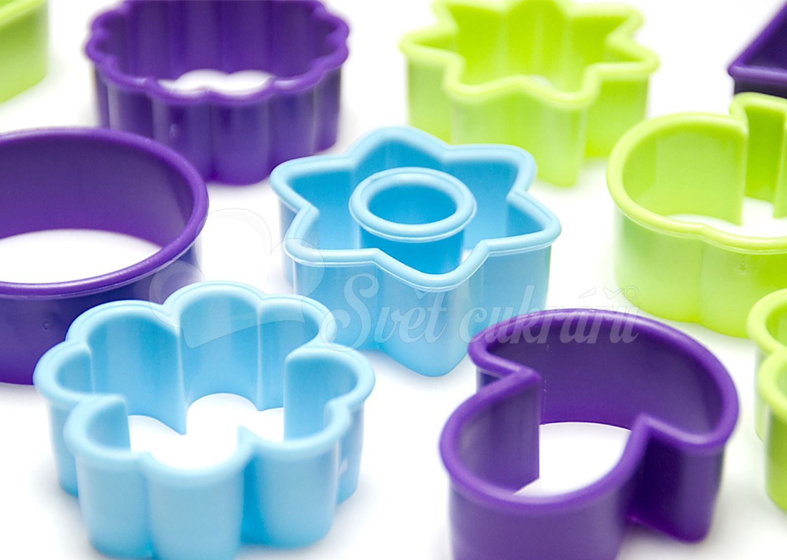 Vykrajovátky vytvoříte několik různých tvarů pečiva z křehkých i dalších těst, která můžete zdobit čokoládou, slepovat krémy a džemy a dalšími sladkými pomazánkami. Vykrajovátky můžete vypichovat tvary z modelovacích a potahovacích hmot, kterými ozdobíte nejen dorty, ale také cupcakes a další zákusky. Barevné provedení se bude líbit především dětem. Snadno je tak nalákáte k práci a zapojí se do pečení s vámi.