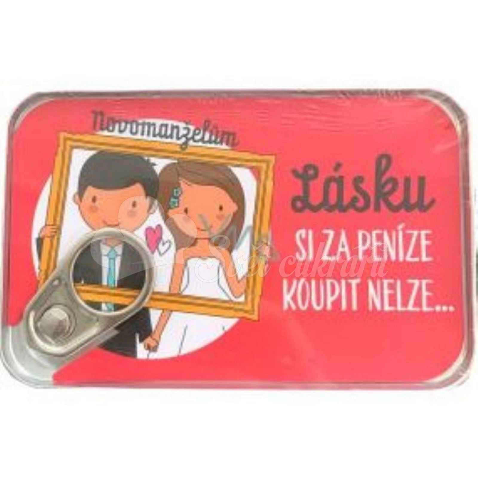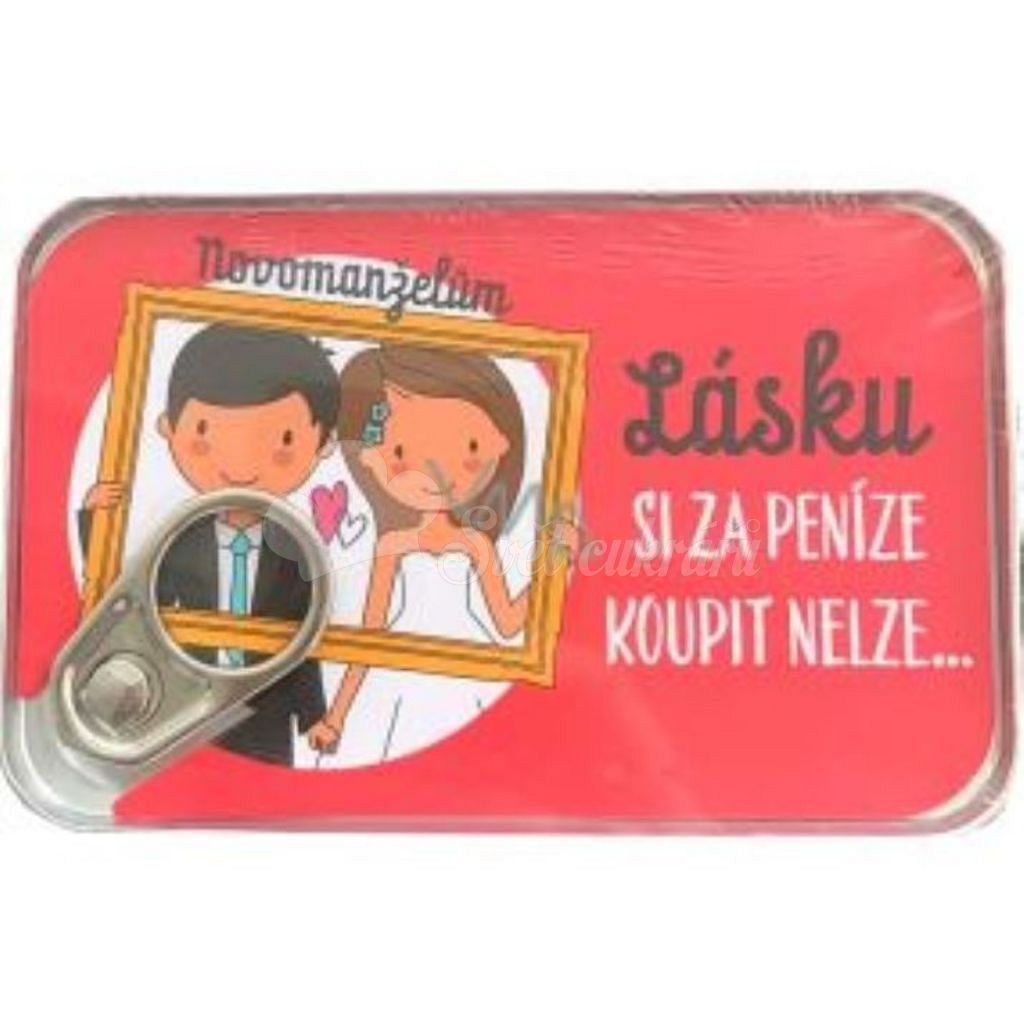 - Instrukce k použití: Do plechovky vložte bočním otvorem přáníčko, peníze nebo dárkový poukaz a opatrně zalepte transparentní samolepkou.