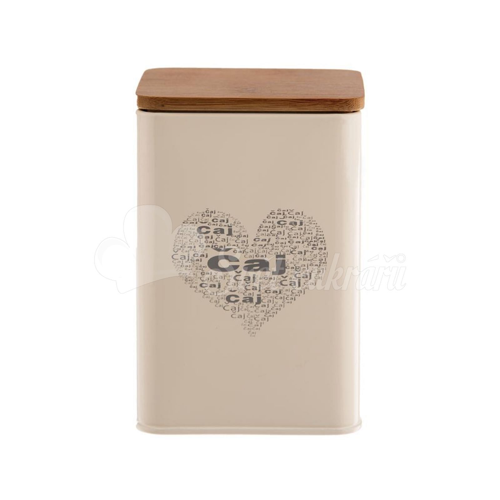 Dóza plech/dřevo 9,5x9,5x14 cm ČAJ SRDCE