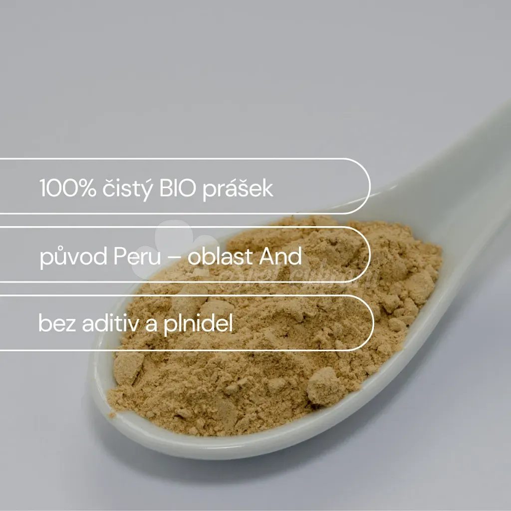 Náš produkt je certifikován jako bio, což znamená, že maca byla pěstována bez použití pesticidů, herbicidů a chemických hnojiv. Produkt neobsahuje lepek a je vhodný pro vegany a vegetariány. Obal je neprůhledný, aby chránil prášek před UV zářením a zajistil tak jeho optimální trvanlivost.