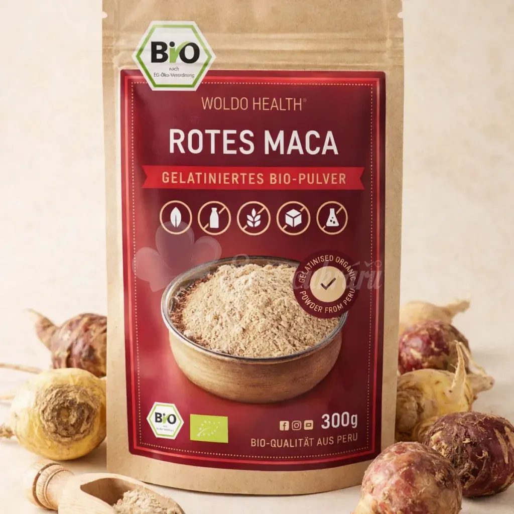 100 % bio červená peruánská Maca v prášku. Naše bio želatinovaná maca je šetrně zpracovaná, což zajišťuje lepší dostupnost a vstřebávání živin ve srovnání s tradiční macou. Woldohealth maca prášek je balen v uzavíratelném obalu o hmotnosti 300 g. Doporučuje se začít s užíváním 1 čajové lžičky (přibližně 5 g) denně, a dávku postupně zvyšovat podle osobní tolerance a potřeby.