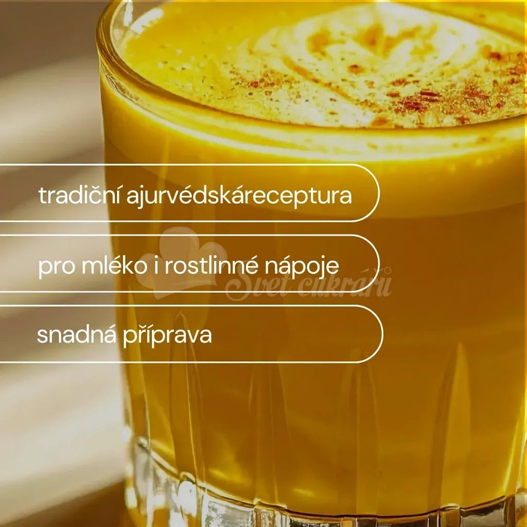 Zlaté mléko je tradiční ajurvédský nápoj ze směsi kurkumy, zázvoru, skořice a černého pepře v organické kvalitě.