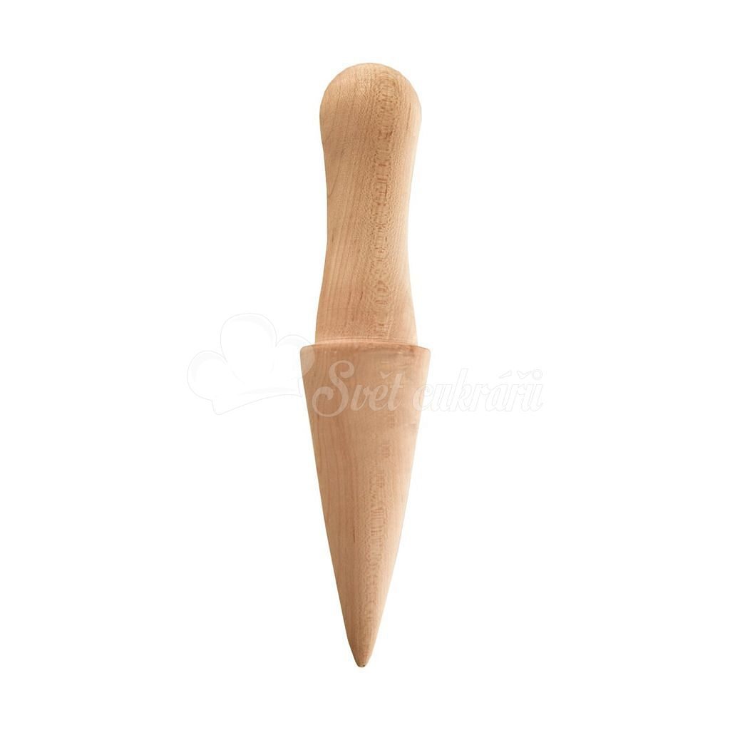 Tradiční pomůcky z přírodního dřeva by neměly chybět v žádné kuchyni. Formička na kornoutky ve tvaru kužele vám pomůže vytvořit klasické vaflové zmrzlinové kornouty, upečené ve vaflovači. Tyto kornouty můžete plnit domácí zmrzlinou, ovocem, krémem, dření či slanou pomazánkou.